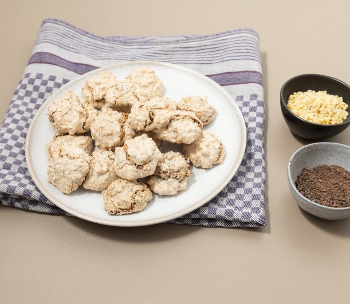6. Den Teig mit zwei Teelöffeln in Häufchen auf zwei mit Backpapier ausgelegten Backblechen setzen. Etwa 25 Minuten backen, aus dem Ofen nehmen und auf dem Backblech abkühlen lassen.